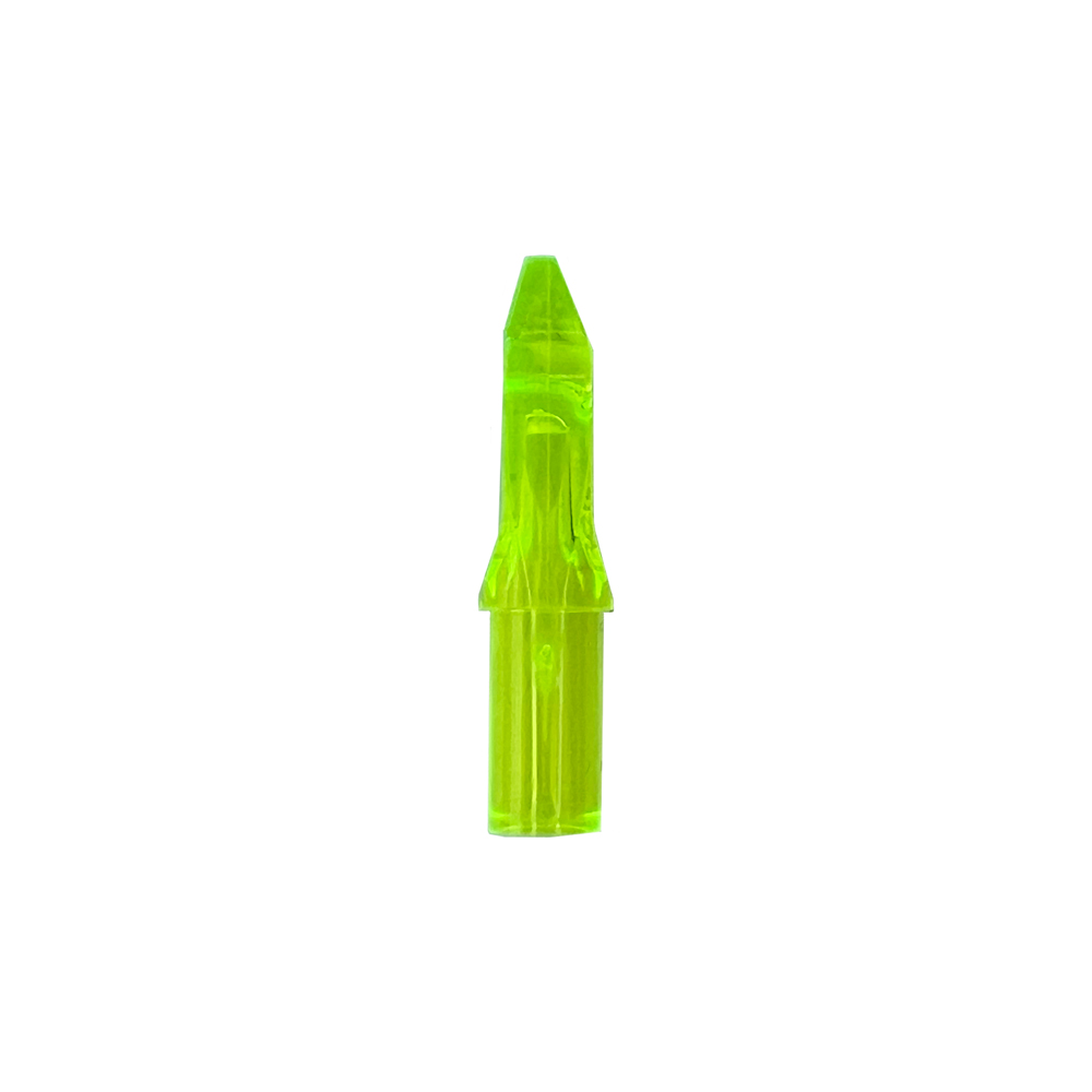 An asymmetrical nock is a nock that is not equal at the top and bottom. These nocks are mainly used by Recurve and Barebow shooters, because they do not pull the string symmetrically. With an asymmetrical nock you ensure that the arrow leaves the string on the right side and this improves the arrow flight.